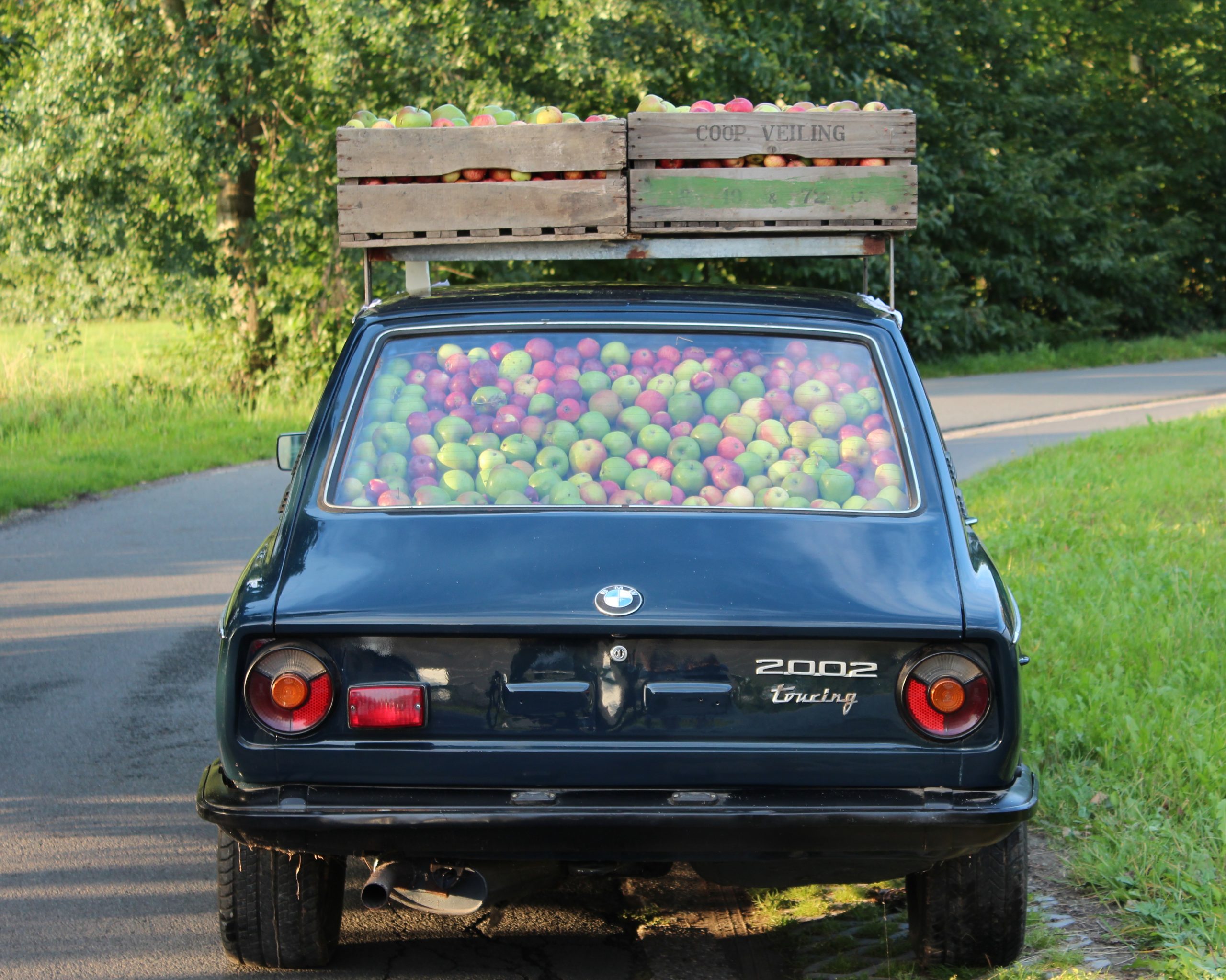 In 2009 breidden we onze werking uit met een mobiele fruitpers in Zevergem. Zo konden we niet alleen ons eigen fruit verwerken, maar ook het fruit van lokale fruittelers en particulieren persen tot heerlijk natuurtroebel appelsap. Met onze pers rijden we tot 100 km rond onze thuisbasis, door heel Vlaanderen, om mensen te helpen het beste uit hun oogst te halen.